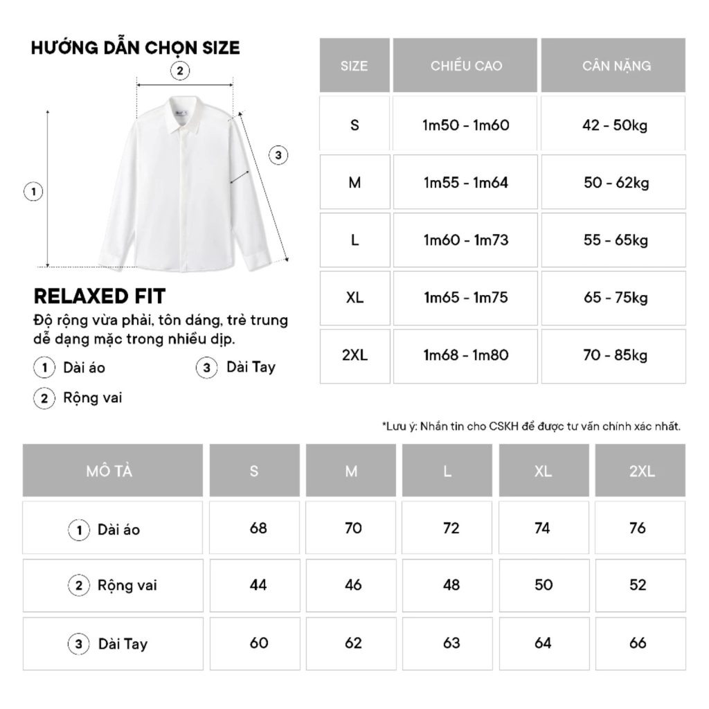 •Thiết kế: Cổ áo truyền thống, tay dài basic, dễ phối đồ.